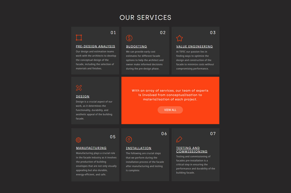 We designed a striking website for Tifec with bold colors and unique design elements, offering clear navigation and impactful visuals that highlight their creative brand identity.